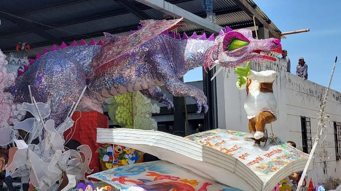 Ciudad Cultural va tomando color para el desfile de carrozas: así salía la de la EET N°1 de Palpalá