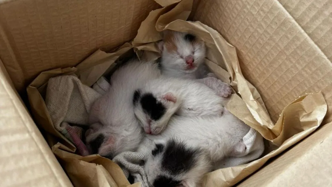 Según relató una vecina, el hallazgo ocurrió alrededor de las 17:00, cuando salió de su domicilio y encontró en la vereda una caja con cinco crías de gato, en condiciones críticas. Los animales aún no abrieron los ojos y presentaban signos de hambre extrema y debilidad.