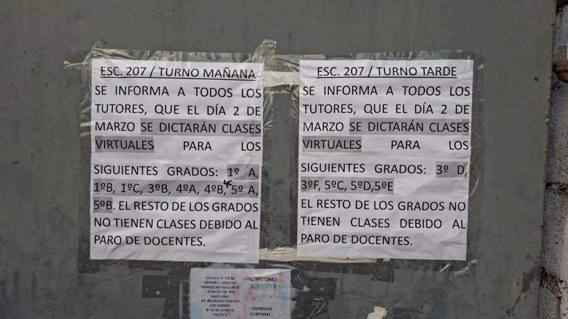 El ciclo lectivo 2026 comenzó con múltiples dificultades en la Escuela Primaria "Pío Martijena" de Palpalá, donde las actividades se desarrollan de manera virtual debido a trabajos de infraestructura en el edificio escolar y a un elevado nivel de adhesión al paro docente.