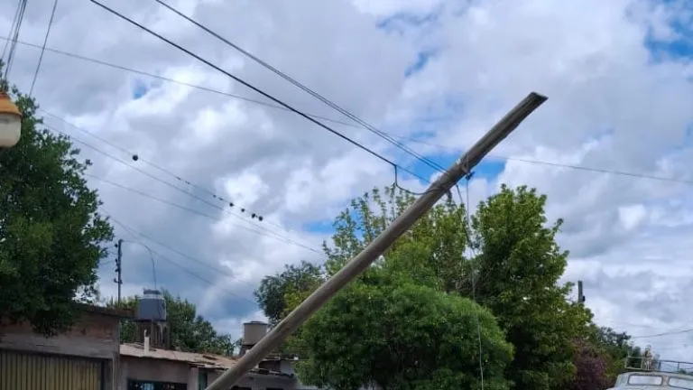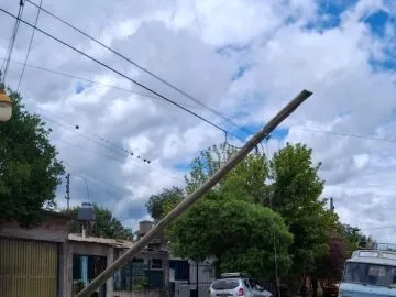 Según relataron, la situación se registra en la intersección de Destructor Bouchard y Teniente Bolsán, donde el poste "cada día está más caído" y representa un riesgo permanente, especialmente para los niños que suelen jugar en la zona.