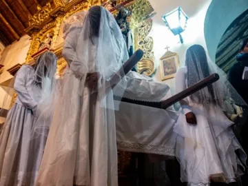 Cada Viernes Santo, mujeres y niñas de distintas comunidades participan de este ritual centenario. Vestidas con túnicas blancas, descalzas y con el rostro cubierto, recorren las calles del pueblo acompañando la imagen de la Virgen María, mientras entonan cantos y letanías cargados de simbolismo y recogimiento.