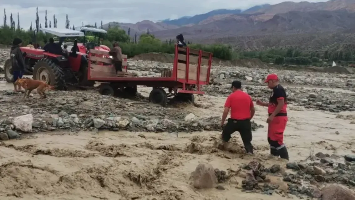 Temporal en Jujuy: rescatan a una familia atrapada por la crecida de un río en Huacalera