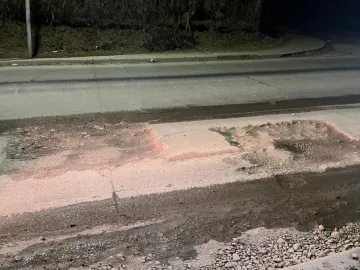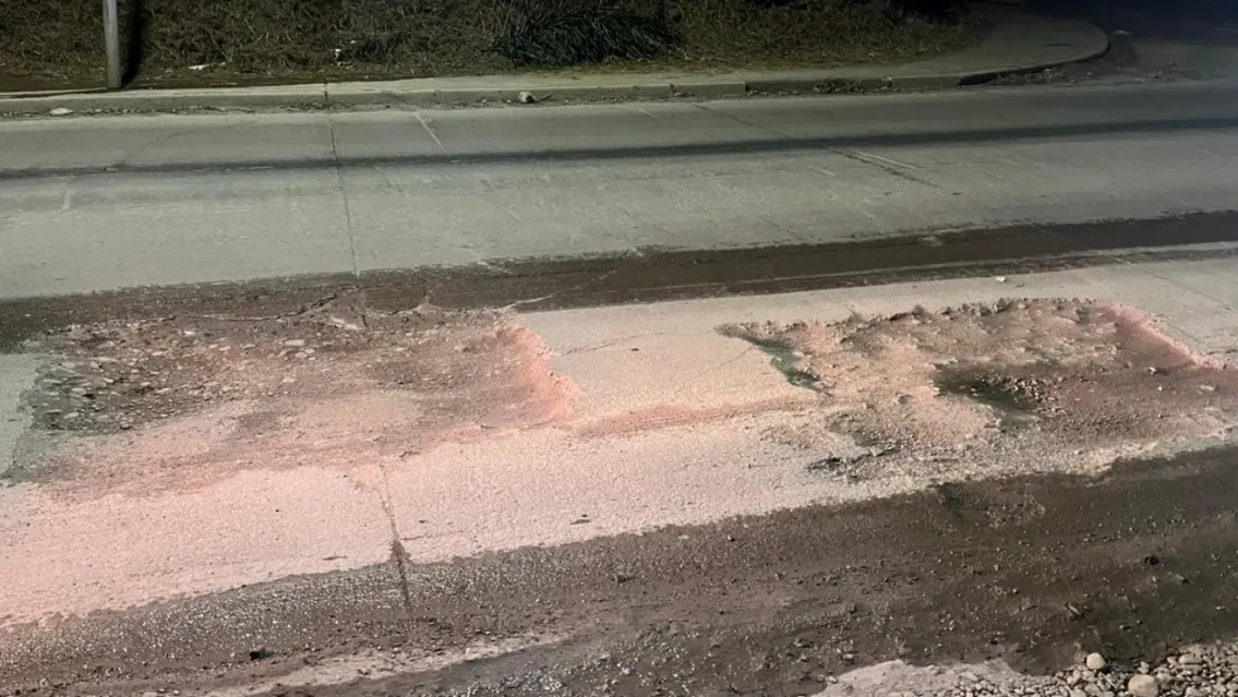 A pesar de nuevas obras de pavimentación anunciadas por el municipio, la avenida Intersindical sigue repleta de baches y pérdidas de agua que ponen en riesgo a quienes transitan por la zona.