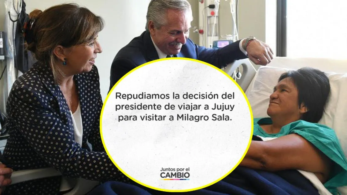 Juntos por el Cambio emitió un comunicado tras el paso del presidente de la Nación por Jujuy para visitar a Milagro Sala y repudió la suspensión de la agenda oficial. Además, aseguraron que Alberto Fernández pasó por encima de la Constitución Nacional: "Esta vez, sin que le tiemble el pulso, apuntando directamente contra la Corte Suprema de Justicia, pidiéndole que "empiece a enmendar las barrabasadas", en referencia a las causas que aún tiene pendientes la líder de la agrupación Tupac Amaru".
