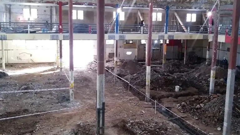 Actualmente, se ejecutan trabajos de encadenados, bases y refuerzos estructurales en las columnas para dar lugar, posteriormente, a trabajos de definiciones arquitectónicas.