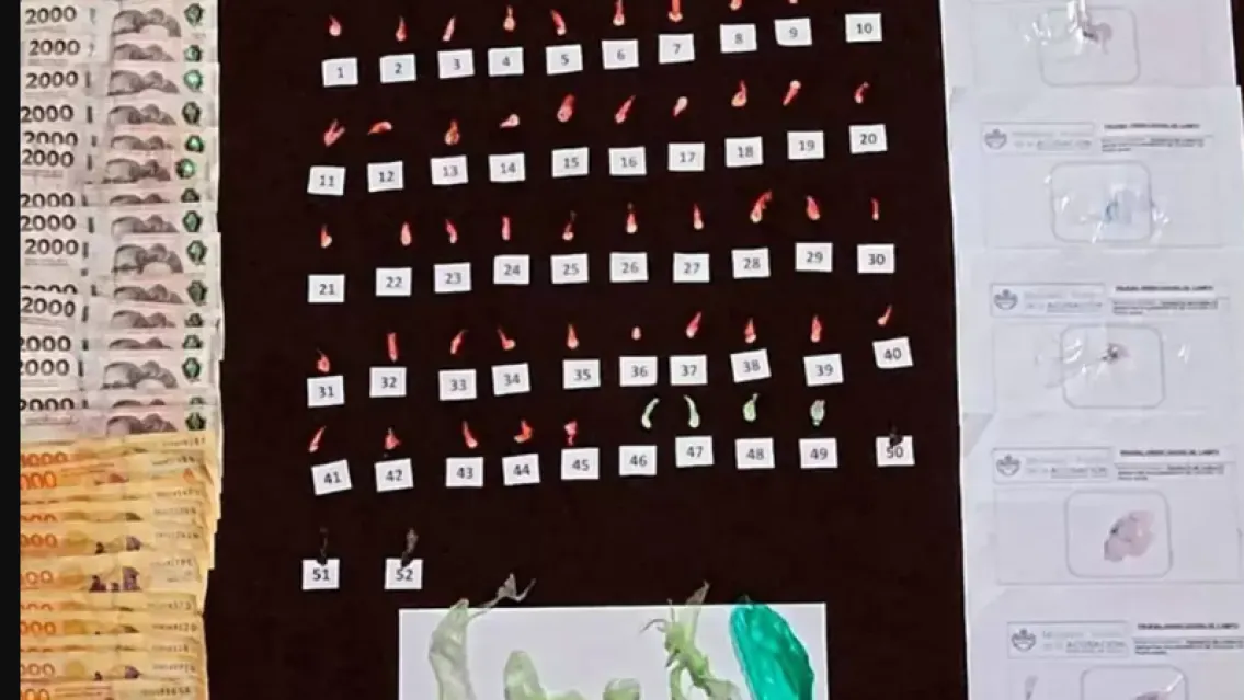 Además, se incautaron sumas de dinero en pesos argentinos y bolivianos, teléfonos celulares, un motovehículo y elementos utilizados para el fraccionamiento, como picadores y recortes de polietileno.