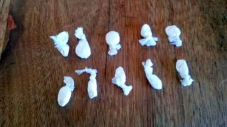 Al inspeccionar la zona, los agentes encontraron un envoltorio de polietileno que contenía dos paquetes más pequeños con una sustancia compactada de color blanco amarillento. Tras realizar una prueba de campo, se confirmó que se trataba de clorhidrato de cocaína con un peso total de once gramos.