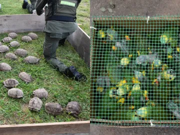 Entre los animales rescatados había 146 tortugas de tierra, que estaban en dos bolsas de arpillera y una caja adiciona; y 182 aves de distintas especies, halladas en cinco cajas. Entre ellas, pepiteros de collar, reina mora, jilgueros y corbatitas.