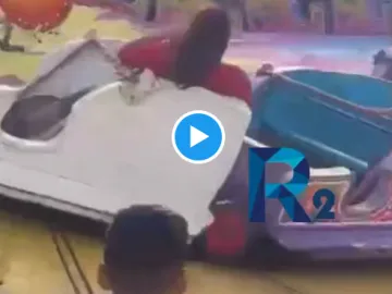En las imágenes, se puede apreciar cómo el joven intenta mantenerse en pie mientras el juego está en funcionamiento, pero desafortunadamente, pierde el equilibrio y es arrojado con fuerza, impactándose contra un barandal y cayendo en el acceso a unas escaleras.