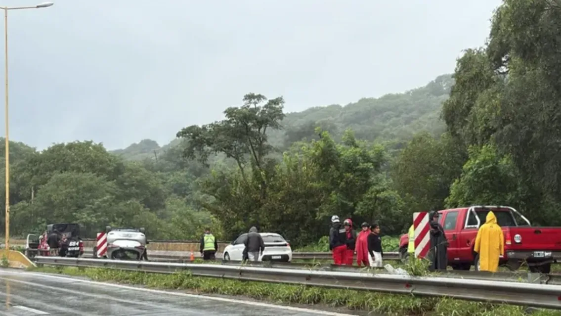 Sucedió hace instantes a la altura del arroyo Huaico Grande. El asfalto mojado por la llovizna le jugó una mala pasada a los conductores. Hay un operativo gigante en la zona y el tránsito es un caos.