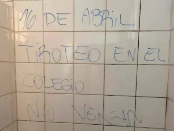 La amenaza de tiroteo escrita en la pared de una escuela de la ciudad Jesús María, en Córdoba.