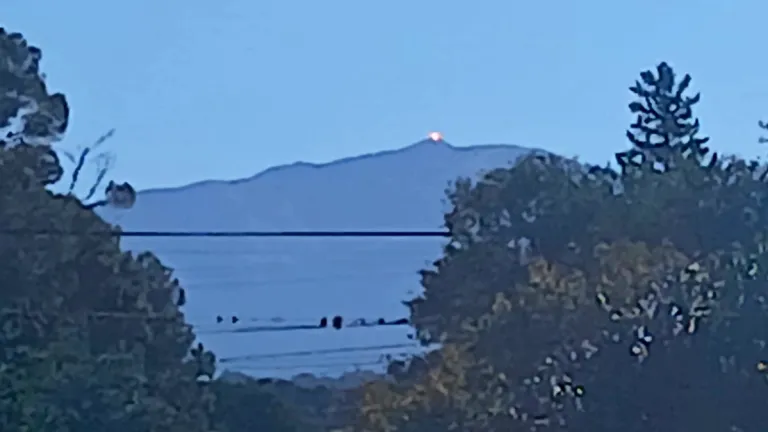 Justamente esa ubicación genera un reflejo muy puntual sobre la superficie del cerro y produce desde abajo el efecto visual de una luz encendida.