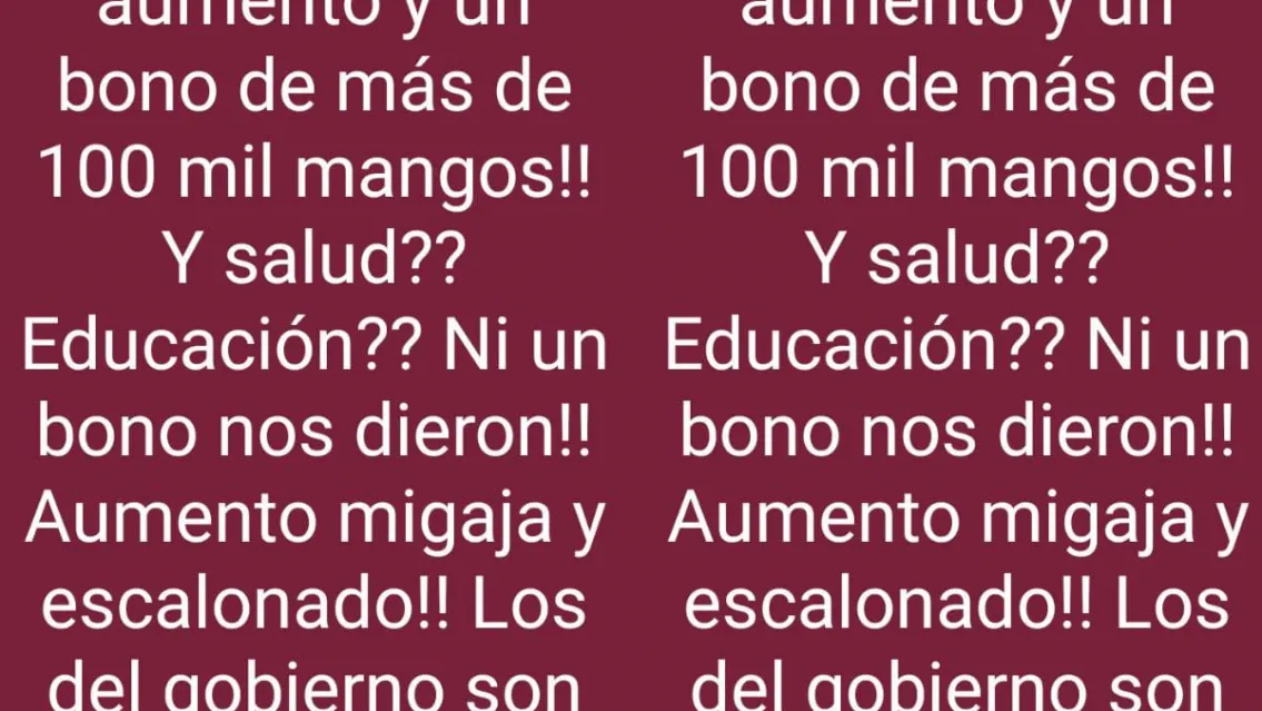 Aumento migaja y escalonado!! Los del gobierno son una vergüenza, detalló.