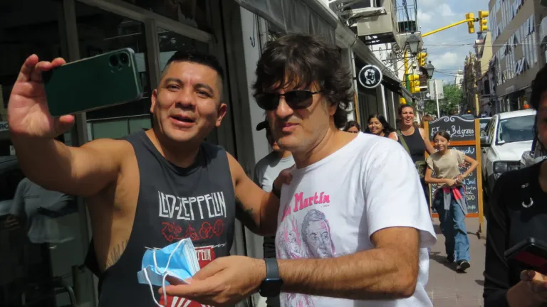 Todos aprovecharon para sacarse fotos y él fue muy accesible. El artista toca con su banda "Ciro y los Persas" esta noche en el Estadio Delmi de esa provincia.