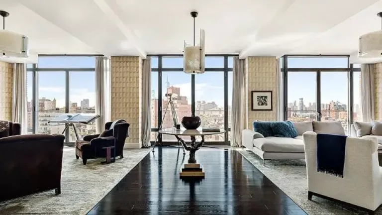 Según la descripción de ese medio, un ascensor se abre en un vestíbulo privado que conduce a una sala de estar completa con un balcón Juliette con vistas a la ciudad de Nueva York, con una gran cocina contigua totalmente equipada. También tiene grandes ventanales que van del piso al techo y una terraza privada.