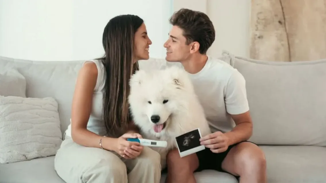Con el secreto ya revelado, el delantero decidió acudir a las redes. Y aunque le quedó la emoción contenida de no haber sido él quien lo anunciara en primera persona -como suelen hacerlo muchos-, eligió compartir una publicación oficial junto a su novia, en la que mostraban el test de embarazo, una ecografía del bebé en camino y a su perro Tarzán, que también fue parte del tierno anuncio.