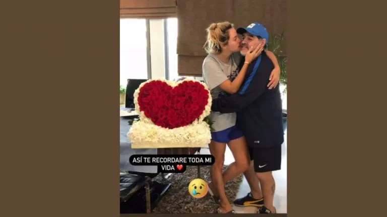 "Así te recordaré toda mi vida", escribió la rubia en una de sus historias. La frase dedicada exclusivamente a El Diez estuvo acompañada de una foto que los encuentra juntos y abrazados. Ella le está dando un beso en la mejilla al lado de un enorme corazón formado por rosas rojas y blancas. El pasado 25 de noviembre Diego partió de este mundo terrenal dejando una herida en todos los argentinos y en todas las argentinas.